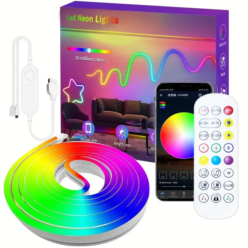 bande led néon 5M-شريط اضاءة نيون مرن مع تحكم ذكي و مزامنة مع الموسيقى LED