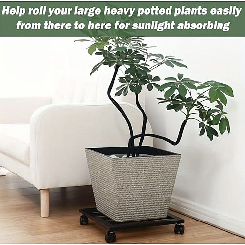 Support pot à roulettes en Métal- Noir - 30x30x10cm
