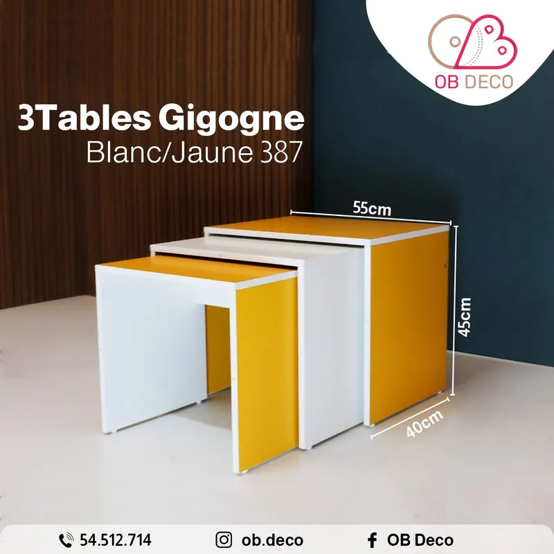 3 Tables gigogne tania blanc/jaune 387