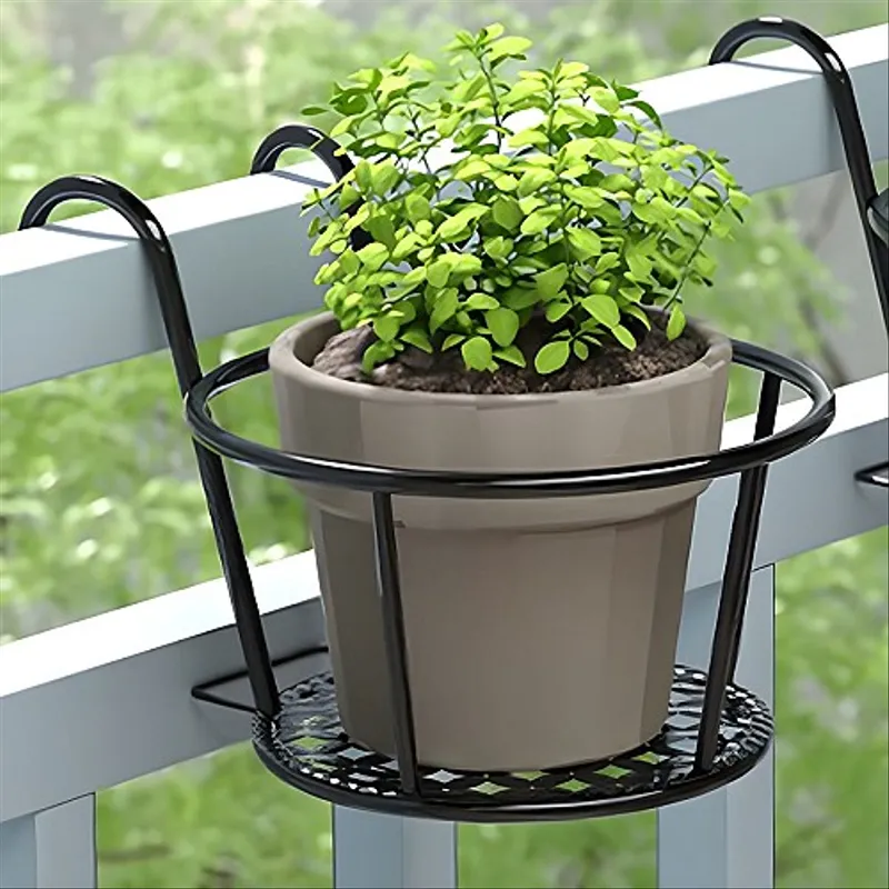 Support à plantes rond -acier -noir-L x D: (18x22)cm