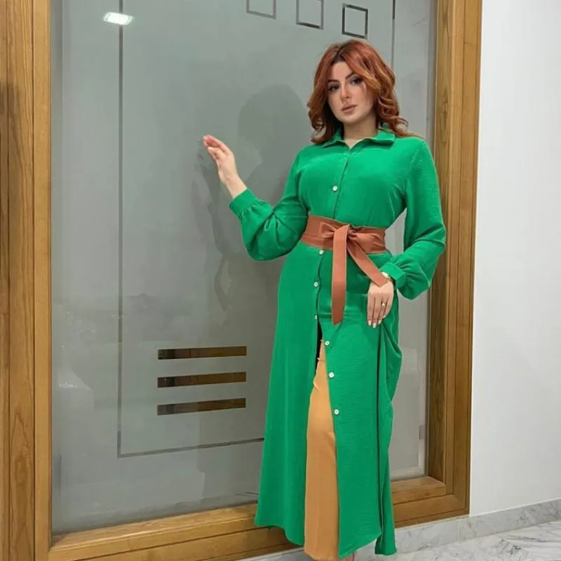 Robe chemise uni en crêpe froissé