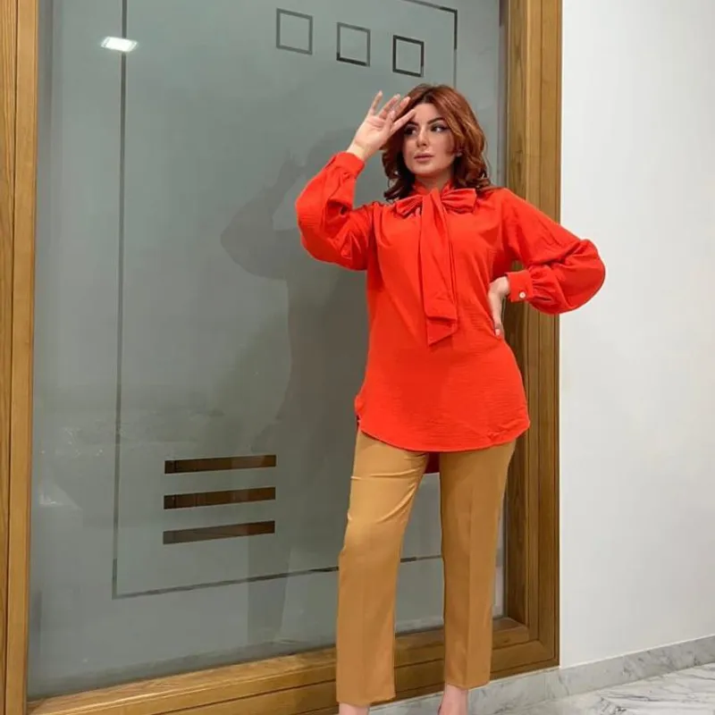 Chemise cravate uni en crêpe froissé