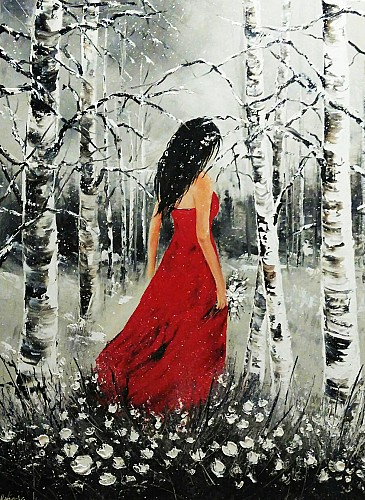 Tableau abstrait imprimé sur toile lady in red