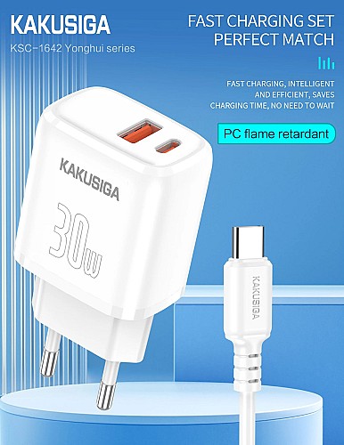 chargeur rapide KAKUSIGA Double Port avec câble Type-C vers Type-C