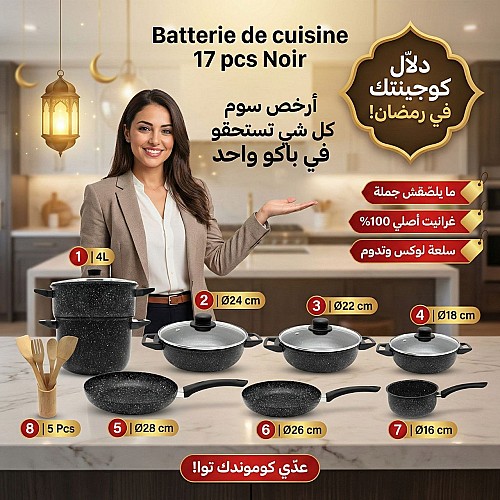 Batterie de Cuisine Complète 17 Pièces – Revêtement Granite Noir