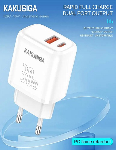 chargeur mural double port KAKUSIGA PD30W+QC3.0
