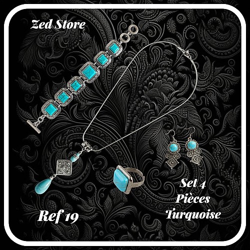 Ensemble Bijoux 4 Pièces Turquoise Ethnique - Réf 19