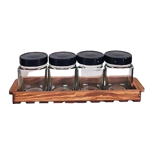 Set de 4 boite a epice 314 +support bois