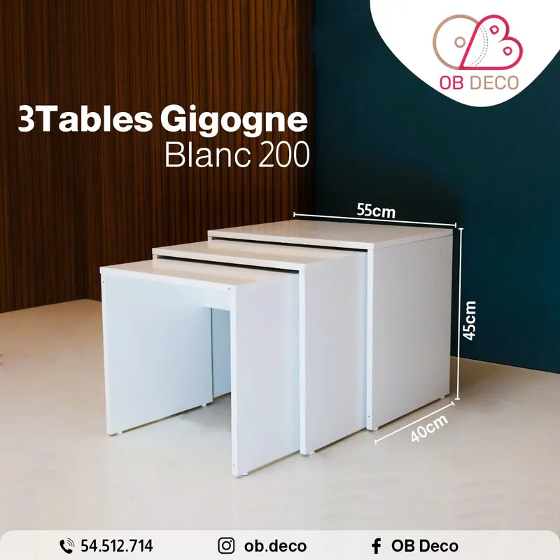 3 Tables gigogne tania blanc 200
